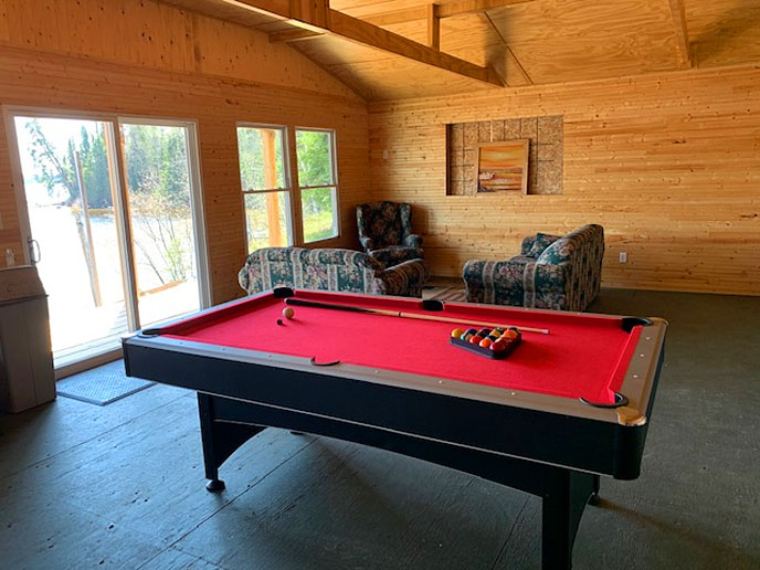 Prairie Bee has a game room that overlooks the lake at the main camp. The game room has a complimentary pool table, foosball and skeeball. Kayaks are available to use for no additional fee. In addition, a limited cell signal can be picked up from this location.